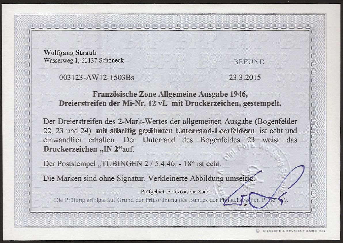 | Prüfer: | Straub, Wolfgang (BPP (Bund Philatelistischer Prüfer)) |