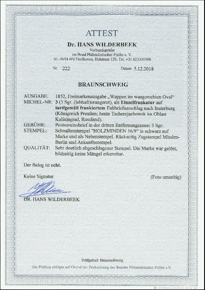 | Prüfer: | Wilderbeek, Hans (BPP (Bund Philatelistischer Prüfer)) |