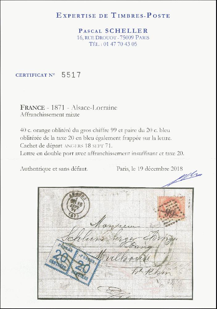 | Prüfgebiet: | Norddeutscher Postbezirk 1870 - 1871 Elsass-Lothringen |