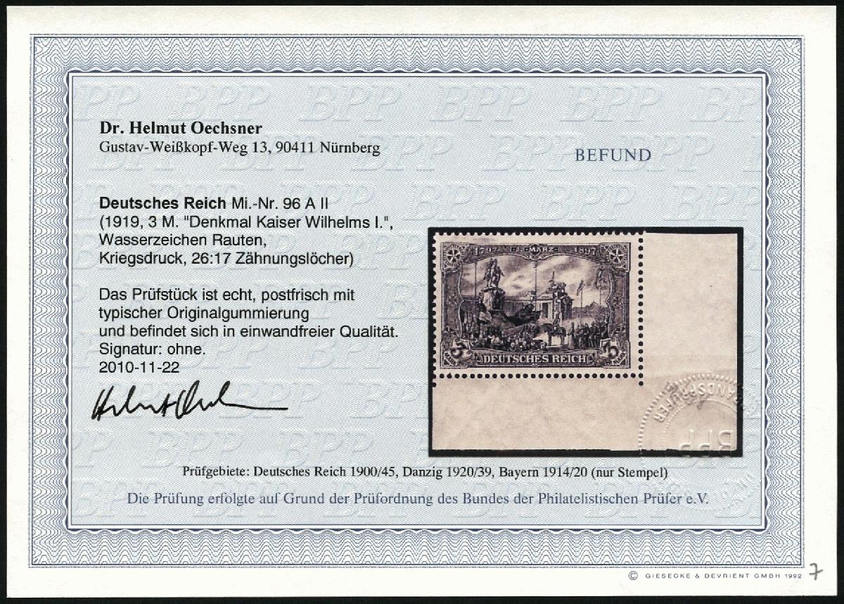 | Prüfgebiet: | Deutsches Reich 1871 - 1918 (Mi-Nr. 1 - 106) |