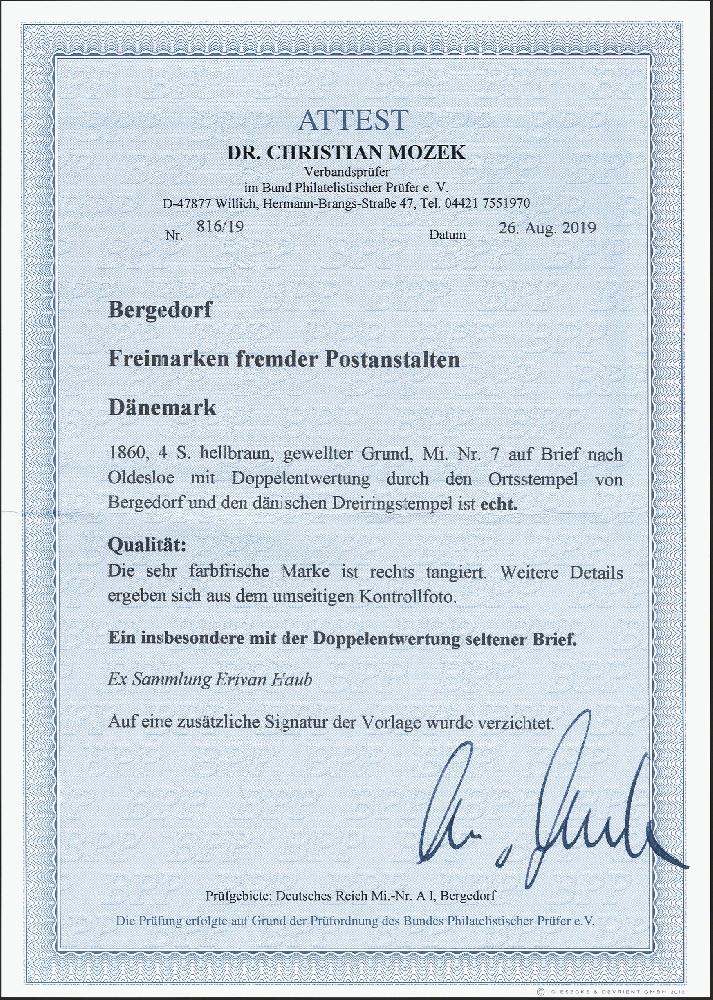 | Prüfgebiet: | Altdeutschland Bergedorf fremde Postanstalten |