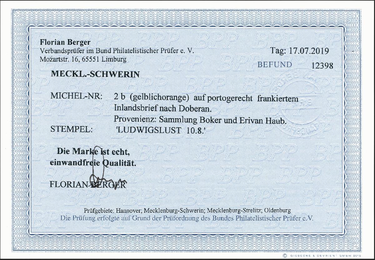| Prüfer: | Berger, Florian (BPP (Bund Philatelistischer Prüfer)) |