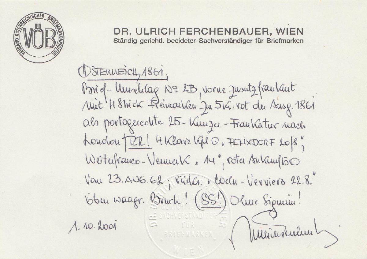 | Prüfer: | Ferchenbauer, Ulrich (VÖB (Verband Österreichischer Briefmarkenprüfer)) |