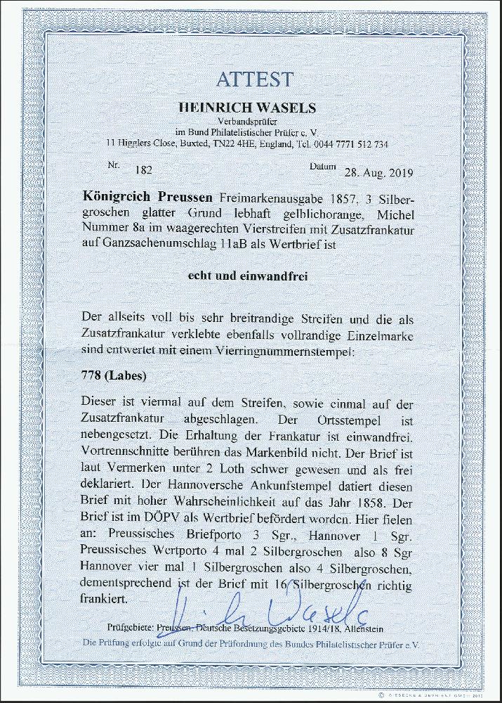 | Prüfer: | Wasels, Heinrich (BPP (Bund Philatelistischer Prüfer)) |
