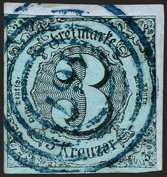 | Zusatzinformationen und Suchstichworte: | 372. Auktion Heinrich Köhler 14. Dezember 2019 Los 275 1853, Farbänderung 3 Kreuzer schwarz auf graublau, meist voll- bis breitrandig mit sauber aufgesetzter blauer Nr. "167" BRAUBACH. Stempel-Seltenheit. Private Signaturen und Fotoattest Sem BPP (2018) Ausruf 200,00 EUR Zuschlag 260,00 EUR (aus der Sammlung Erivan Haub) |