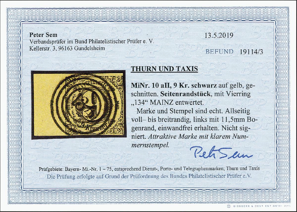 | Prüfgebiet: | Altdeutschland Thurn und Taxis |