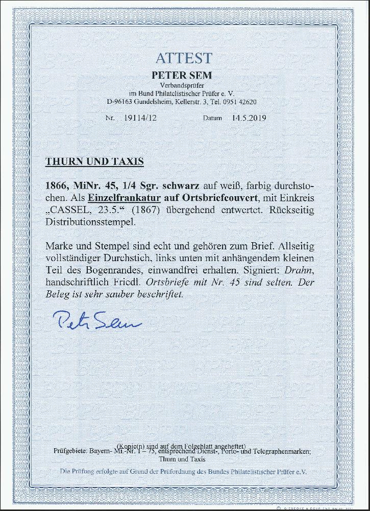 | Prüfgebiet: | Altdeutschland Thurn und Taxis |