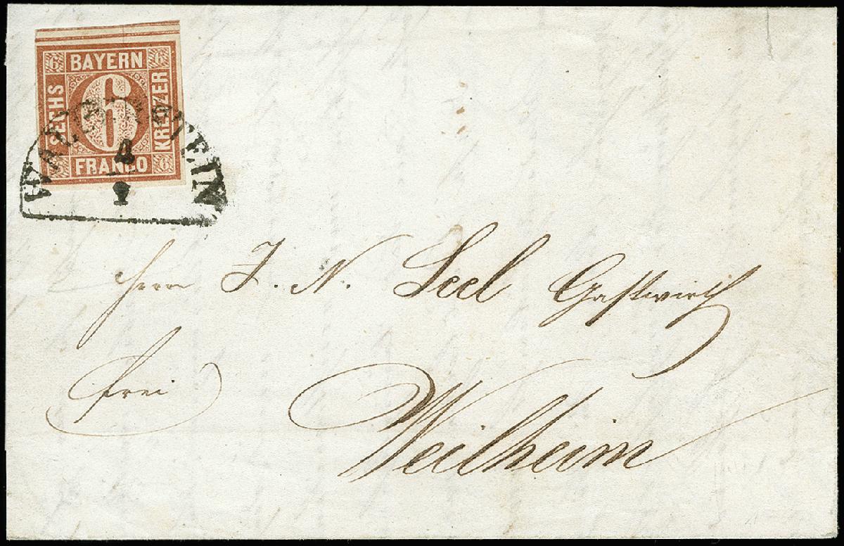 | Zusatzinformationen und Suchstichworte: | 373. Auktion Heinrich Köhler 23.-27. Juni 2020 Los 2873 6 Kreuzer braunorange, voll- bis breitrandig, oben mit praktisch vollständiger doppelter Trennungslinie (sogenannte 'kleine Brücke') mit sauber aufgesetztem Halbkreis "WALLERSTEIN 4/2" auf Faltbrief (linke Seitenklappe fehlend und rechte verkürzt) nach Weilheim. Marken mit doppelter Trennungslinie sind auf Brief sehr selten. Ein schöner Brief in sonst einwandfreier Erhaltung. Fotoattest Brettl BPP (1994) Zuschlag 950,00 EUR |