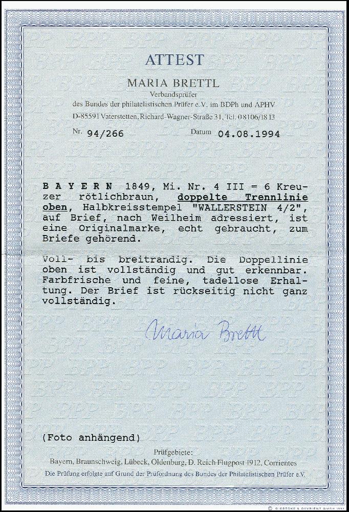 | Prüfer: | Brettl, Maria (BPP (Bund Philatelistischer Prüfer)) |