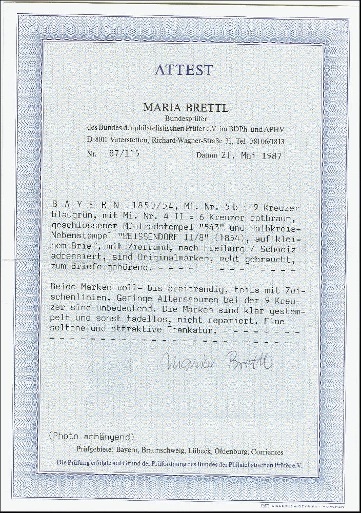 | Prüfer: | Brettl, Maria (BPP (Bund Philatelistischer Prüfer)) |