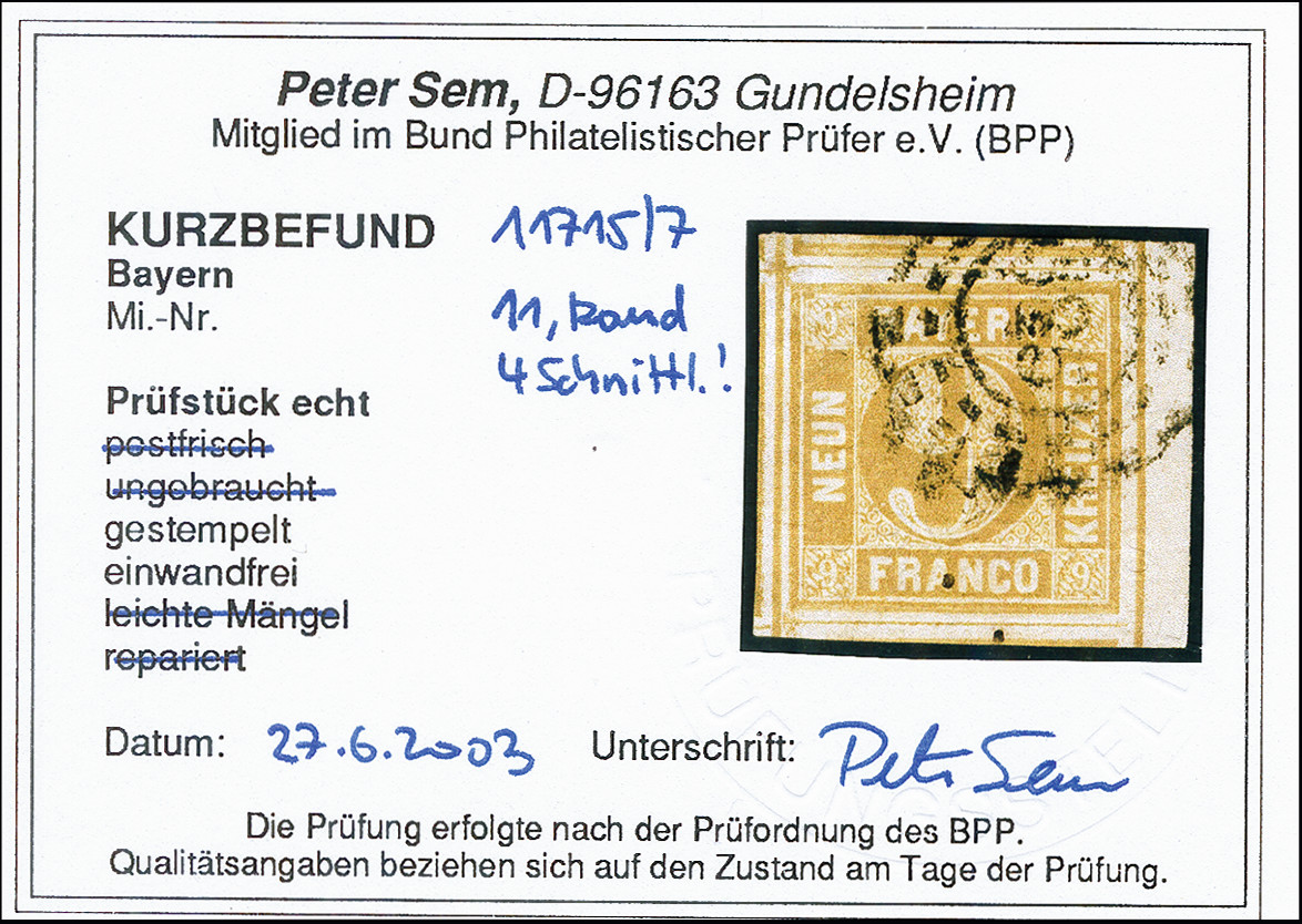 | Prüfer: | Sem, Peter (BPP (Bund Philatelistischer Prüfer)) |