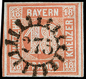| Zusatzinformationen und Suchstichworte: | 373. Auktion Heinrich Köhler 23.-27. Juni 2020 Los 2914 18 Kr. blassrot, farbfrisch und voll- bis überrandig mit zentrisch sauberem gMR "275" LAUF, Kabinett, sign. Pfenninger und Schmitt BPP sowie Fotoattest Schmitt BPP (2015) Zuschlag 240,00 EUR |