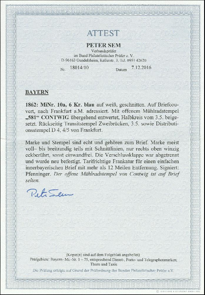 | Prüfer: | Sem, Peter (BPP (Bund Philatelistischer Prüfer)) |