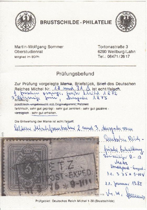 | Prüfgebiet: | Deutsches Reich 1871 - 1918 (Mi-Nr. 1 - 106) |