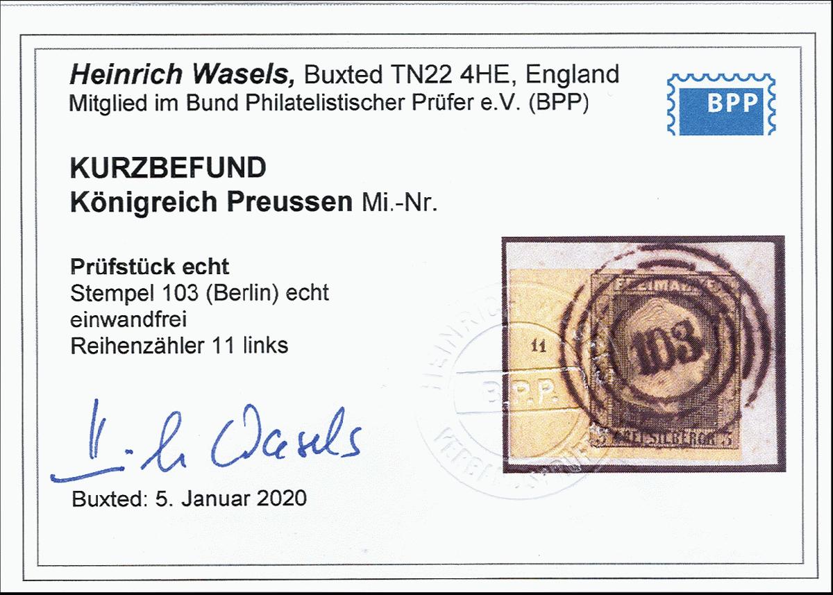 | Prüfer: | Wasels, Heinrich (BPP (Bund Philatelistischer Prüfer)) |