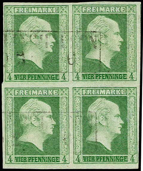 | Zusatzinformationen und Suchstichworte: | 373. Auktion Heinrich Köhler 23.-27. Juni 2020 Los 2997 4 Pfg. grün im 4er-Block, farbfrisch und voll- bis breitrandig, leicht entwertet durch Ra2 "RELLINGHAUSEN 20 2", Kabinett, sign. Rasche und Fotoattest Wasels BPP (2020) Zuschlag 850,00 EUR |