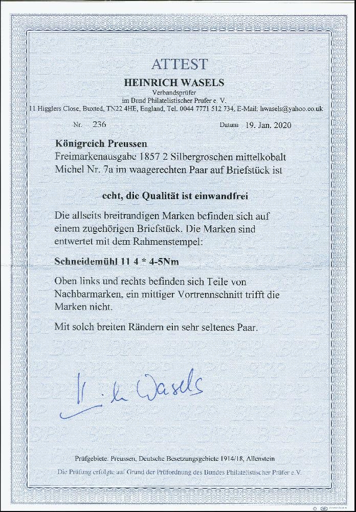 | Prüfer: | Wasels, Heinrich (BPP (Bund Philatelistischer Prüfer)) |