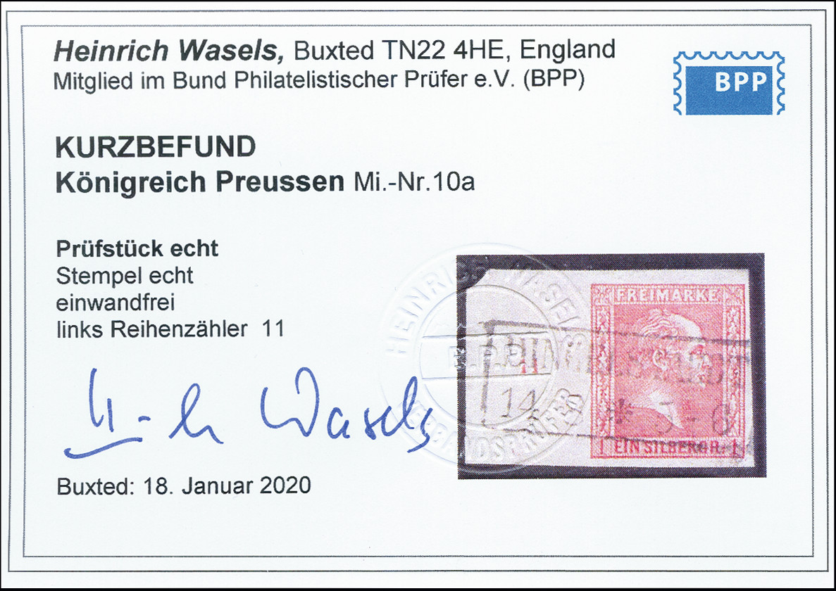 | Prüfer: | Wasels, Heinrich (BPP (Bund Philatelistischer Prüfer)) |
