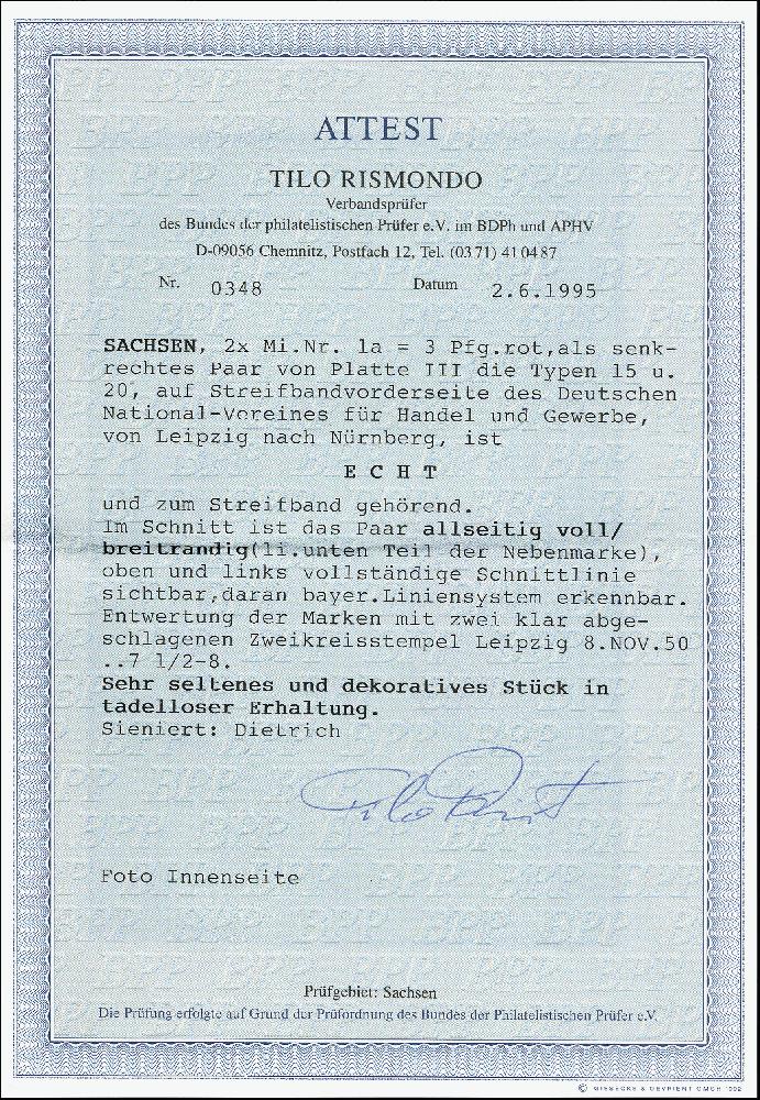 | Prüfer: | Rismondo, Tilo (BPP (Bund Philatelistischer Prüfer)) |