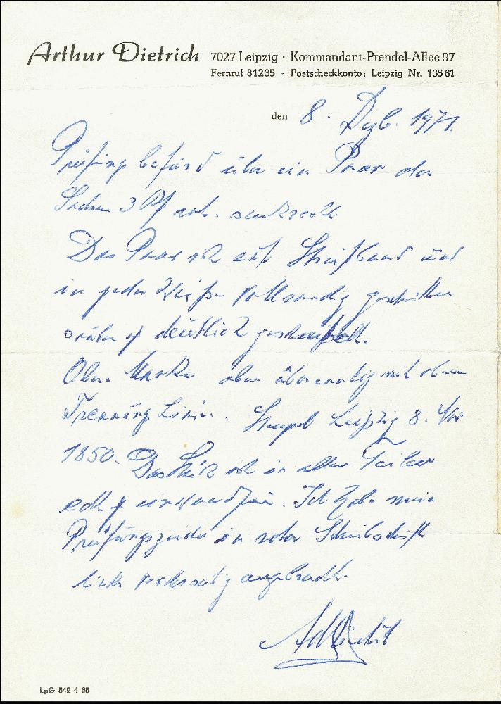 | Zusatzinformationen und Suchstichworte: | 373. Auktion Heinrich Köhler 23.-27. Juni 2020 Los 3023 3 Pfg. rot, Platte III, senkrechtes Paar der Typen 15 und 20 in schöner frischer orangeroter Nuance, voll- bis breitrandig, oben und links mit vollen Zwischenlinien sowie links unten Teil der linken Nachbarmarke, mit sauberem DKr. Stempel "LEIPZIG 8 NOV. 50" auf Drucksachen-Vorderseite "Vom Directorium des deutschen National-Vereines für Handel und Gewerbe" nach Nürnberg. Die Vorderseite mit kleinen Randfehlern, das Paar einwandfrei. Sign. Dr. Werner und Dietrich sowie Fotoattest Rismondo BPP (1995) Zuschlag 9.500,00 EUR |