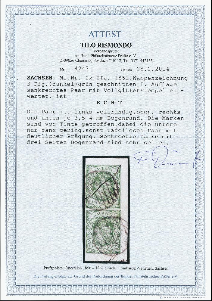 | Prüfer: | Rismondo, Tilo (BPP (Bund Philatelistischer Prüfer)) |