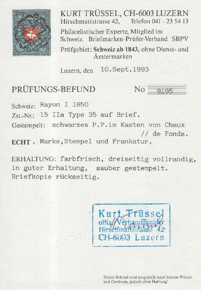 | Prüfer: | Trüssel, Kurt (SBPV / ASEP (Schweizerischer Briefmarken-Prüfer-Verband)) |