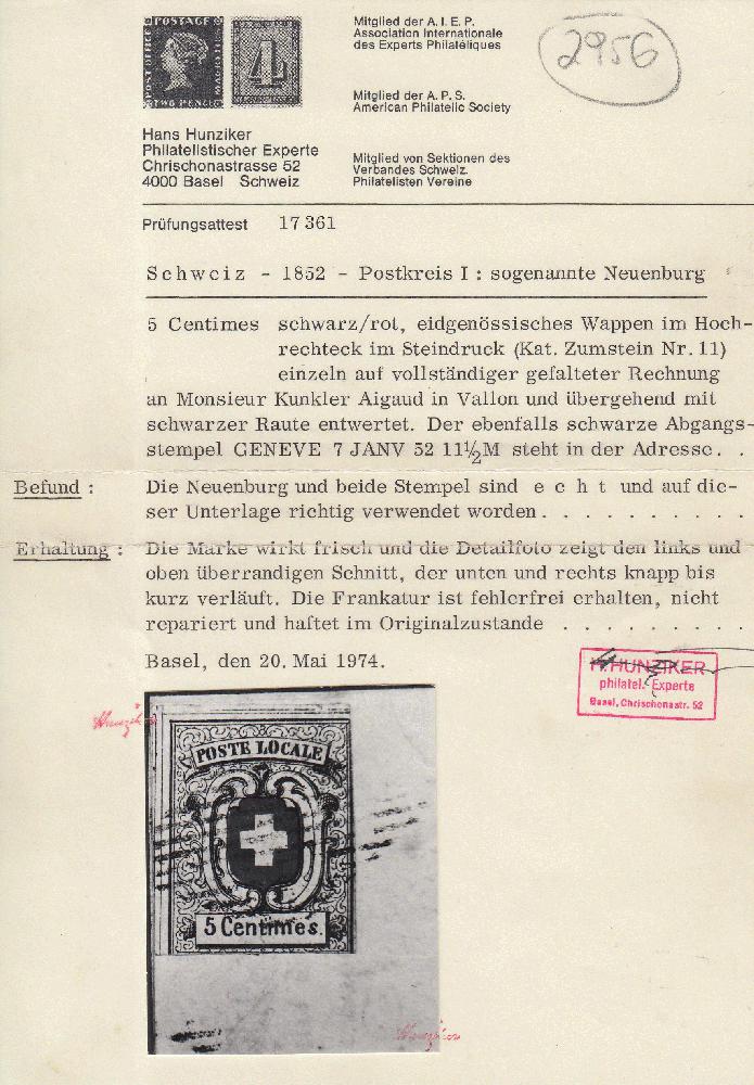 | Prüfer: | Hunziker, Hans (AIEP (Association internationale des experts en philatélie)) |