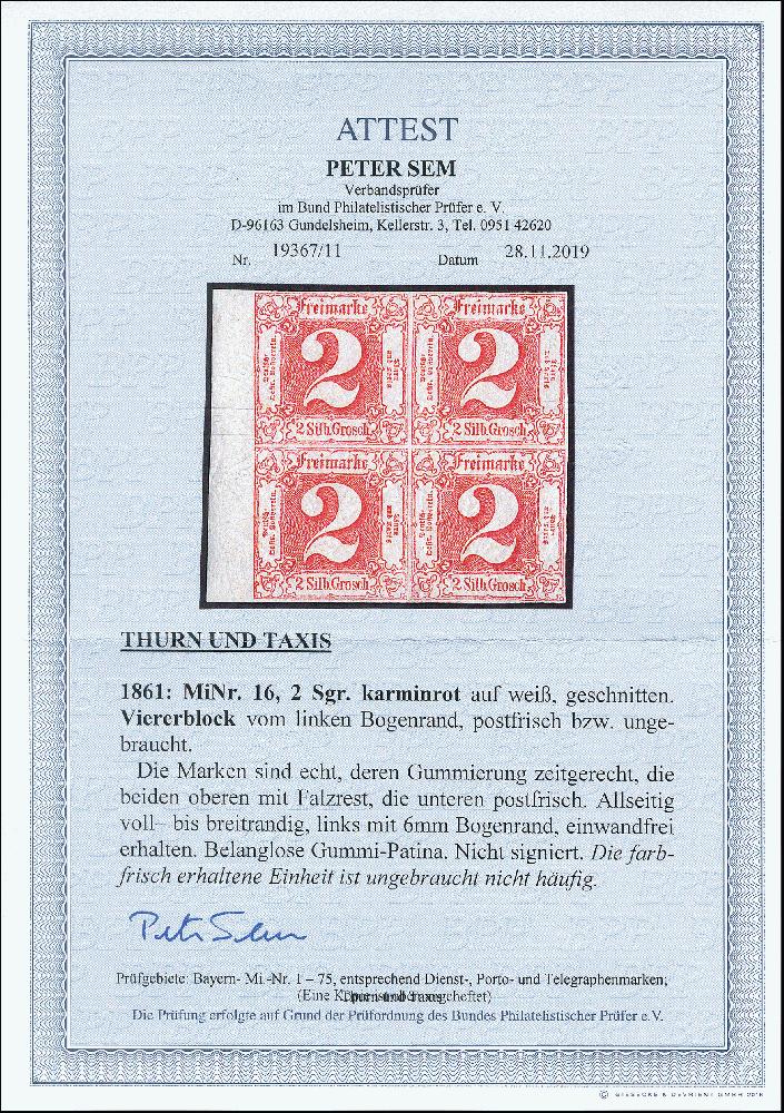 | Prüfer: | Sem, Peter (BPP (Bund Philatelistischer Prüfer)) |