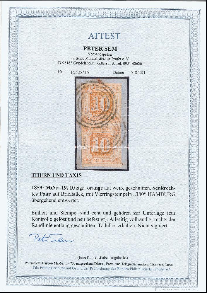 | Prüfgebiet: | Altdeutschland Thurn und Taxis |