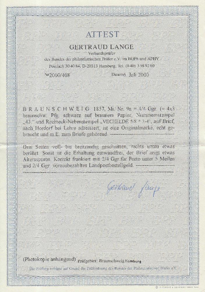 | Prüfer: | Lange, Gertraud (BPP (Bund Philatelistischer Prüfer)) |