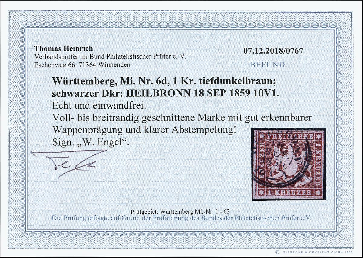 | Prüfer: | Heinrich, Thomas (BPP (Bund Philatelistischer Prüfer)) |