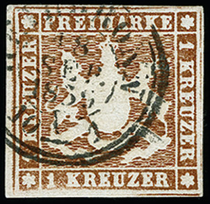 | Zusatzinformationen und Suchstichworte: | 373. Auktion Heinrich Köhler 23.-27. Juni 2020 Los 3083 1857, Wappenausgabe mit Seidenfaden 1 Kr. dunkelorangebraun, farbfrisch und für diese Ausgabe sehr gut gerandet, allseits voll- bis breitrandig, links mit schmalem Bogenrand, mit sauberem DKr. "HEILBRONN 18 SEP 1859", Kabinett, sign. W. Engel und Fotobefund Heinrich BPP (Mi. 800,-) Zuschlag 360,00 EUR |