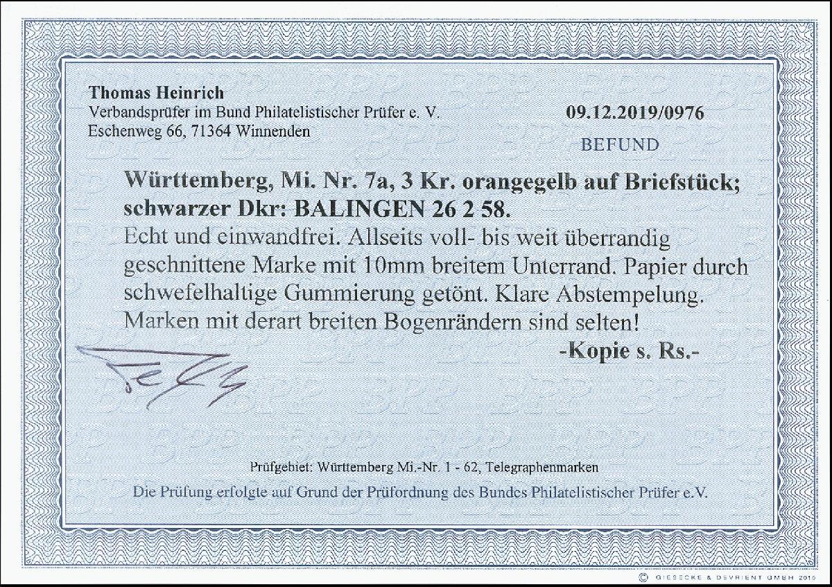 | Prüfer: | Heinrich, Thomas (BPP (Bund Philatelistischer Prüfer)) |