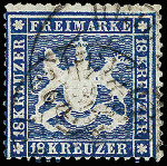 | Zusatzinformationen und Suchstichworte: | 373. Auktion Heinrich Köhler 23.-27. Juni 2020 Los 3094 8 Kr. blau mit Plattenfehler "Senkrechte Striche links am Schwanz des Löwen" (ArGe PFIV), farbfrisch und für diese schwierige Ausgabe gut gezähnt mit schöner Wappenprägung, entwertet durch EKr. von Heilbronn; sign. A. Diena und Fotoattest Heinrich BPP (2019) Zuschlag 850,00 EUR |