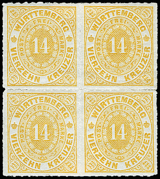 | Zusatzinformationen und Suchstichworte: | 373. Auktion Heinrich Köhler 23.-27. Juni 2020 Los 3103 14 Kr. ockergelb im 4er-Block, sehr schön farbfrisch und gut durchstochen, ungebraucht mit Originalgummi, der Durchstich teils durch Falze gestützt, die rechte obere Marke mit unauffälligem Randspalt, sonst einwandfrei. Größte bekannte Einheit der seltenen Farbe. Sign. Kruschel und Fotoattest Heinrich BPP (2019) Zuschlag 3.500,00 EUR |