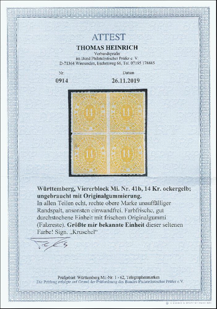 | Prüfer: | Heinrich, Thomas (BPP (Bund Philatelistischer Prüfer)) |