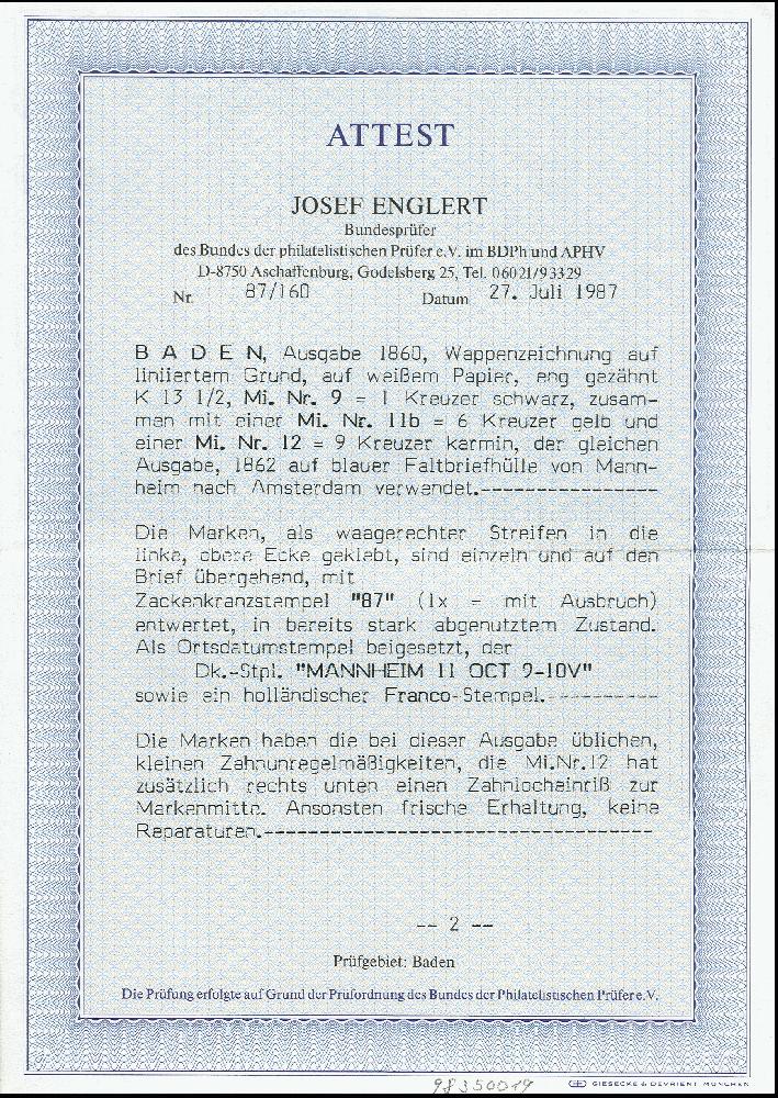 | Prüfer: | Englert, Josef (BPP (Bund Philatelistischer Prüfer)) |