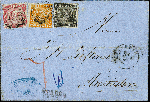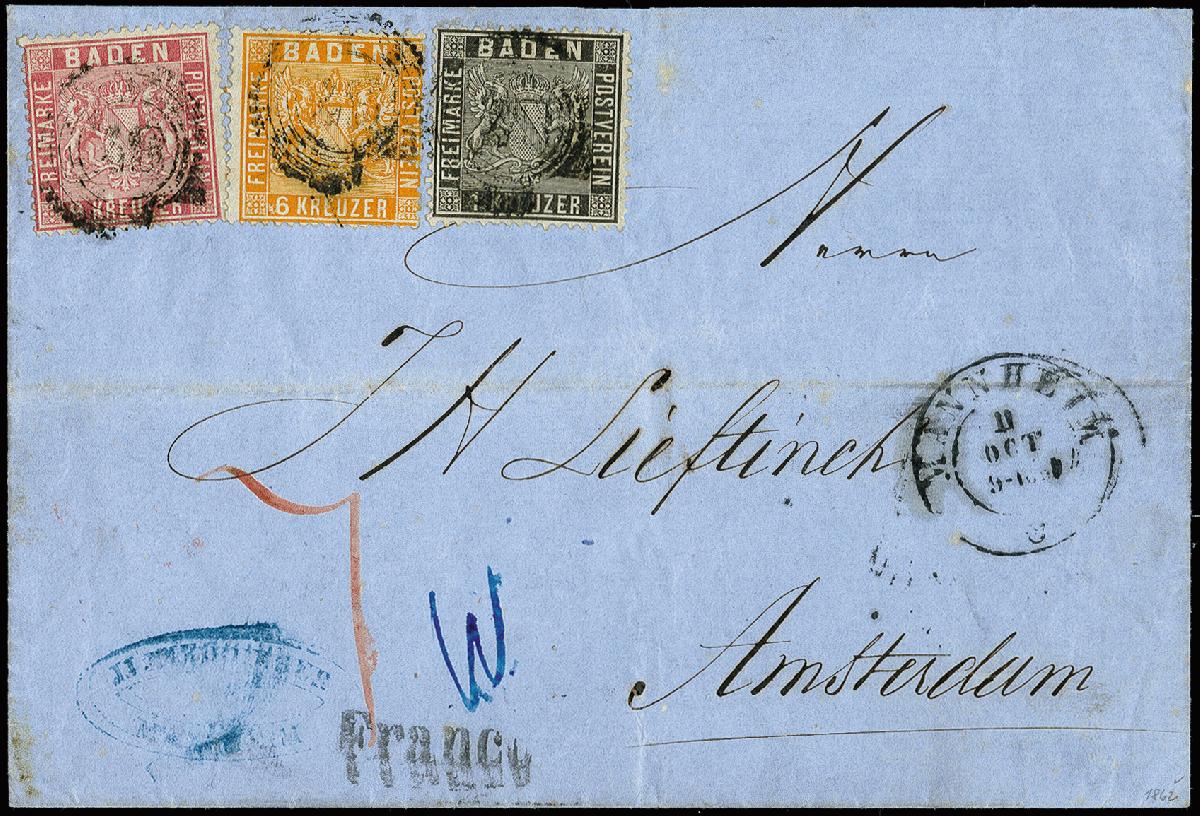 | Zusatzinformationen und Suchstichworte: | 371. Auktion Heinrich Köhler 24.-28. September 2019 Los 2520 1860/61, 1 Kr. schwarz, 6 Kr. hellgelborange und 9 Kr. karmin, bis auf einige verkürzte Zähne bei der 6 Kr. gut gezähnt und farbfrisch, die 6 Kr. mit kleinem Einriß unten rechts, mit Zackenkranz "87" und nebengesetztem DKr. "MANNHEIM 11 OCT." auf Briefhülle nach Amsterdam. Eine attraktive und seltene Dreifarbenfrankatur der 1. gezähnten Ausgabe. Fotoattest Stegmüller BPP (2019) Zuschlag 800,00 EUR |