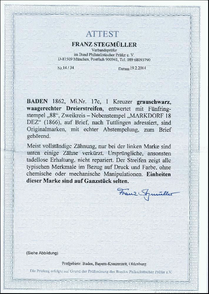 | Prüfer: | Stegmüller, Franz (BPP (Bund Philatelistischer Prüfer)) |