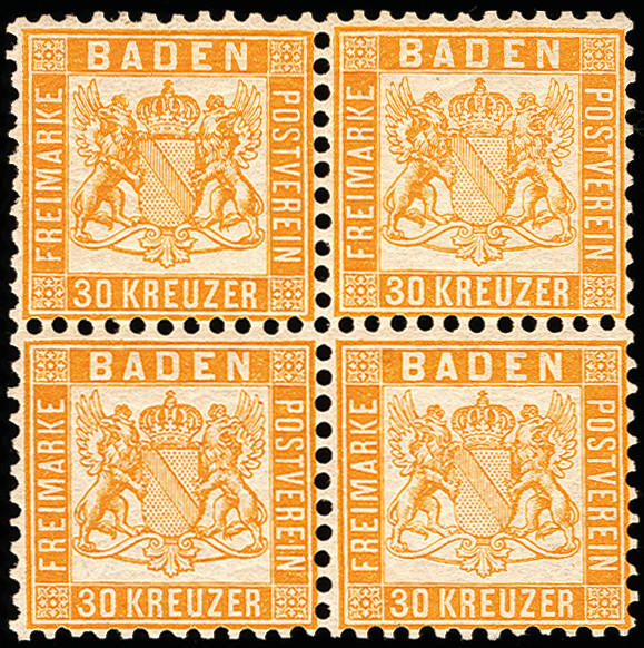 | Zusatzinformationen und Suchstichworte: | 371. Auktion Heinrich Köhler 24.-28. September 2019 Los 2527 30 Kr. lebhaftgelborange im 4er-Block, farbfrisch und allseits tadellos gezähnt, ungebraucht in tadelloser Erhaltung, die linke untere Marke postfrisch, sign. Köhler und Fotoattest Stegmüller BPP Zuschlag 250,00 EUR |