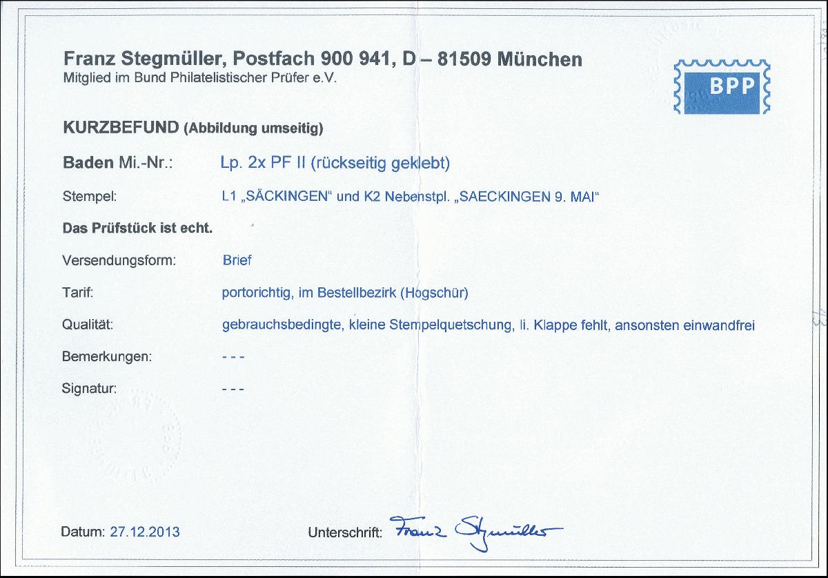 | Prüfgebiet: | Altdeutschland Baden Landpost-Portomarken |