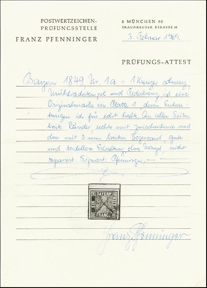 | Zusatzinformationen und Suchstichworte: | 371. Auktion Heinrich Köhler 24.-28. September 2019 Los 2539 1 Kr. schwarz, voll- bis meist breitrandig mit Zwischenlinien an 3 Seiten und oben 2 mm Bogenrand, entwertet durch kleinen Teil eines gMR sowie zusätzlichem Federkreuz; ein dekoratives und seltenes Stück in einwandfreier Erhaltung, sign. Pfenninger mit Attest (1969) Zuschlag 650,00 EUR |