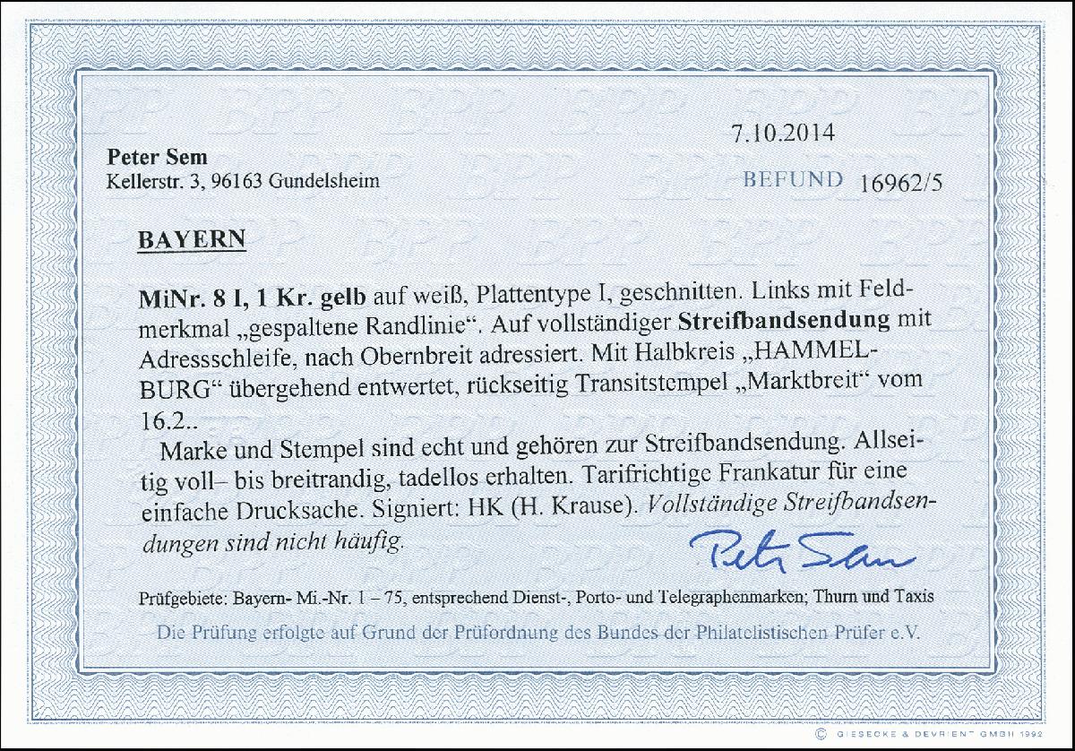 | Prüfer: | Sem, Peter (BPP (Bund Philatelistischer Prüfer)) |