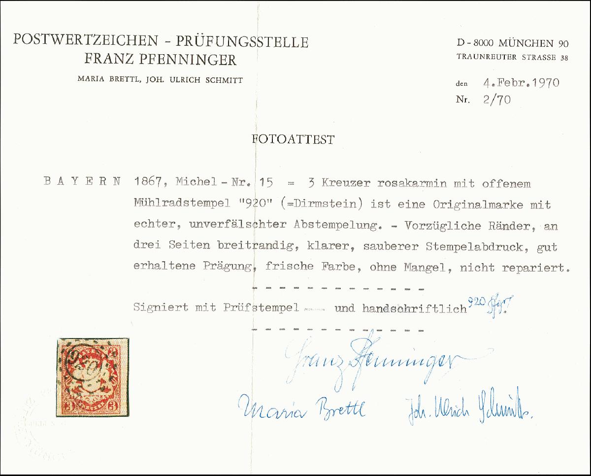 | Zusatzinformationen und Suchstichworte: | 371. Auktion Heinrich Köhler 24.-28. September 2019 Los 2575 "920" DIRMSTEIN, sauber und sehr schön abgeschlagen auf Wappen 3 Kreuzer rosa, voll- bis sehr breitrandig und farbfrisch, Tintenspiegel ganz leicht durchschlagend, schöne und einwandfreie Erhaltung; große Stempel-Seltenheit, signiert Pfenninger und Gemeinschaftsattest Pfenninger/Brettl/Schmitt (1970) Zuschlag 2.400,00 EUR |