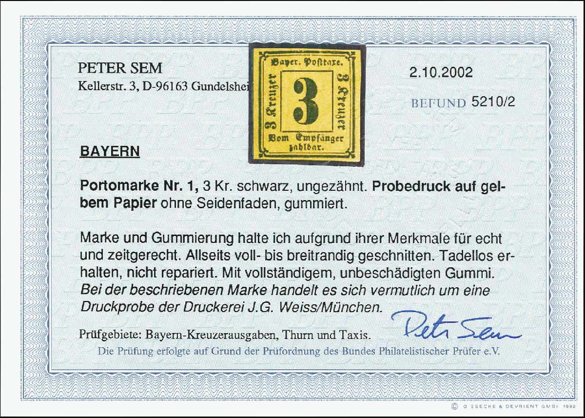| Prüfgebiet: | Altdeutschland Bayern Portomarken |