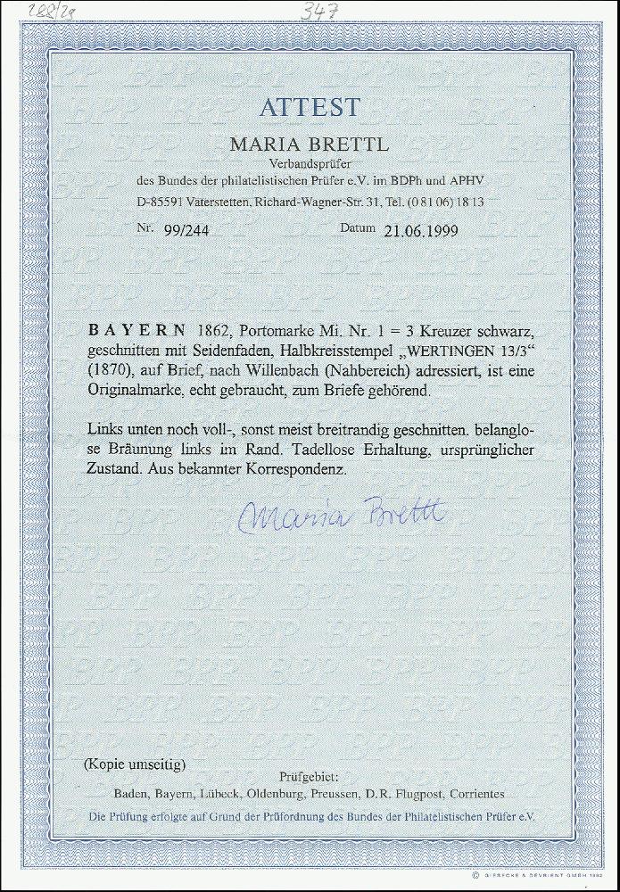 | Prüfgebiet: | Altdeutschland Bayern Portomarken |