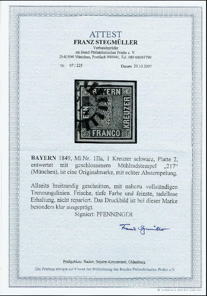 | Prüfer: | Stegmüller, Franz (BPP (Bund Philatelistischer Prüfer)) |