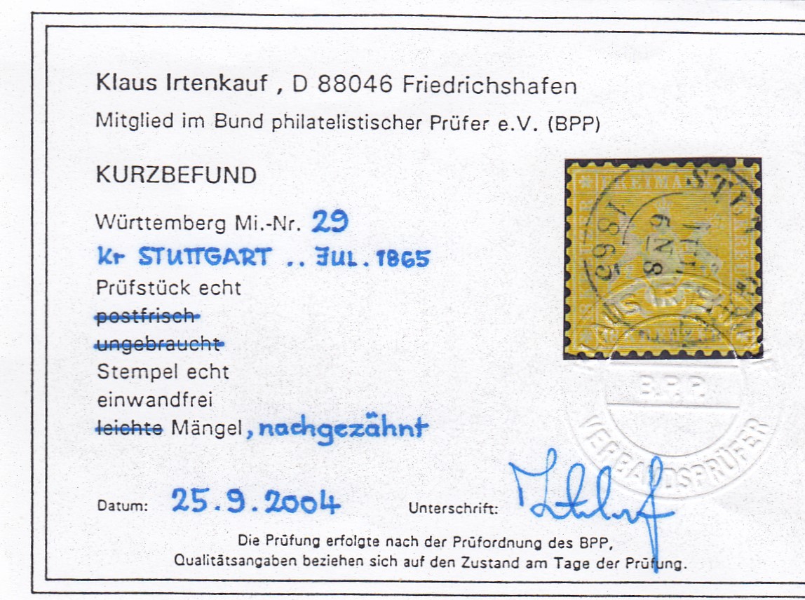 | Prüfer: | Irtenkauf, Klaus (BPP (Bund Philatelistischer Prüfer)) |