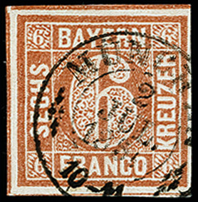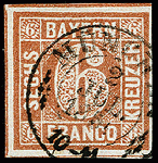 | Zusatzinformationen und Suchstichworte: | 371. Auktion Heinrich Köhler 24.-28. September 2019 Los 8033 6 Kreuzer braunorange, voll- bis breitrandig mit Zwischenlinien an 3 Seiten, sauber entwertet durch DKr. "MÜNCHEN 2 JUL. 1850", Kabinett, signiert Brettl BPP mit Befund Zuschlag 160,00 EUR |