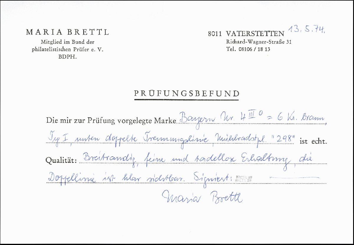| Prüfer: | Brettl, Maria (BPP (Bund Philatelistischer Prüfer)) |